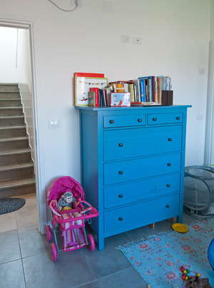 בקומה התחתונה: חדר משחקים ושירותים, סלון גדול ורחב ידיים שכולל גם את פינת